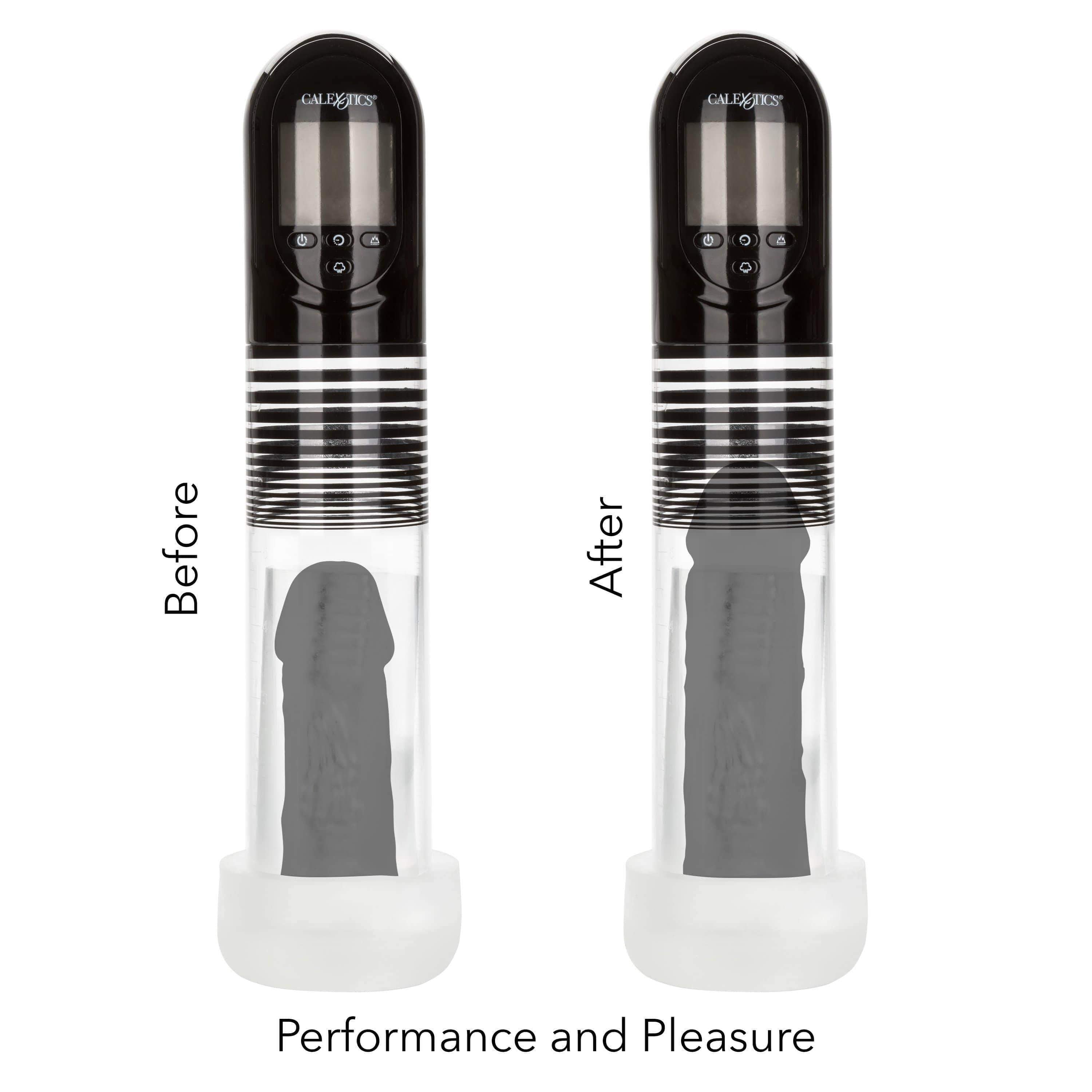 Enhance your pleasure with the California Exotics – Optimum Series Advanced Automatic Smart Penis Pump. This durable penis pump features unparalleled suction and performance. In fact, you are guaranteed to increase performance, stamina, and endurance with each and every pump. Take your rod to new heightened levels with customized exercise modes. The easy-touch buttons and vibrant LED screen are perfect for manual pumping or pressure settings. Stroke your way to unsurpassed pleasure with this amazing penis pump that continues to deliver! Recharge the premium pump in 2 hours with the provided USB charging cable to enjoy 12 hours of pumping pleasure.